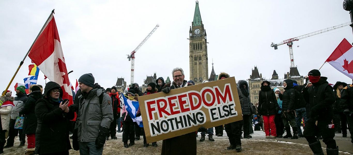 Την ίδια ώρα τουλάχιστον 200 διαδηλωτές του «κονβόι της ελευθερίας» έχουν συλληφθεί στη διάρκεια διαδηλώσεων κατά του υποχρεωτικού εμβολιασμού για Covid 19 των οδηγών φορτηγών.