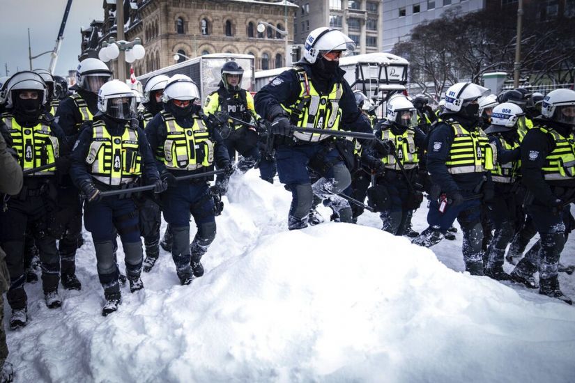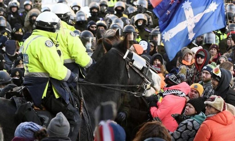 Η ένταση κλιμακώθηκε το Σάββατο όταν η αστυνομία χρησιμοποίησε σπρέι πιπεριού για να διαλύσει τα πλήθη. Η καναδική αστυνομία πραγματοποίησε επιχείρηση «εκκαθάρισης» σε κεντρικό οδικό άξονα μπροστά από το Κοινοβούλιο, χρησιμοποιώντας σπρέι πιπεριού για να απομακρύνει τους εκατοντάδες οδηγούς φορτηγών του «κονβόι της ελευθερίας» που παραμένουν στο κέντρο της Οτάβας και διαμαρτύρονται, εδώ και τρεις εβδομάδες.