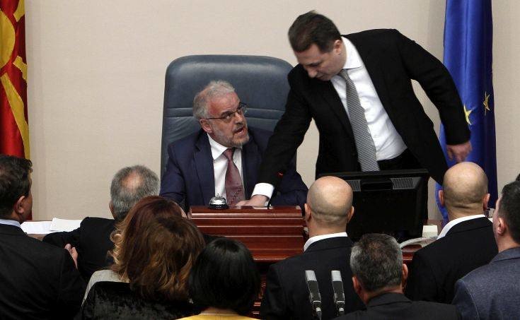 Το νομοσχέδιο που προβλέπει τη διεύρυνση της χρήσης της αλβανικής γλώσσας στην ΠΓΔΜ ψηφίστηκε για 2η φορά στην Βουλή των Σκοπίων με άκρως επεισοδιακό τρόπο.