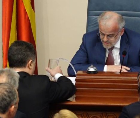 Λίγο πριν την ψηφοφορία σημειώθηκε επεισόδιο μεταξύ του προέδρου της Βουλής Ταλάτ Τζαφέρι (προέρχεται από το συγκυβερνών αλβανικό κόμμα DUI του Αλί Αχμέτι) και του βουλευτή του VMRO-DPMNE και πρώην πρωθυπουργού της ΠΓΔΜ Νίκολα Γκρούεφσκι, ο οποίος εκτίναξε ένα ποτήρι νερό στο έδρανο του προέδρου της Βουλής Ταλάτ Τζαφέρι και του έκλεισε το μικρόφωνο, ενώ χρειάστηκε η παρέμβαση της ασφάλειας της Βουλής, προκειμένου οι δύο άνδρες να μην έρθουν στα χέρια.