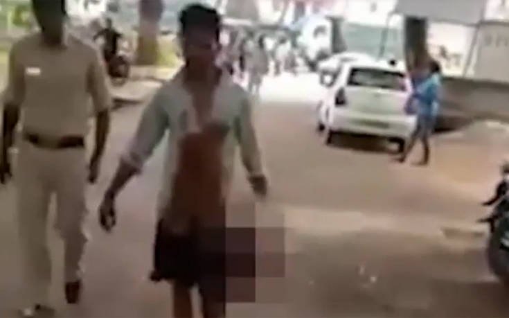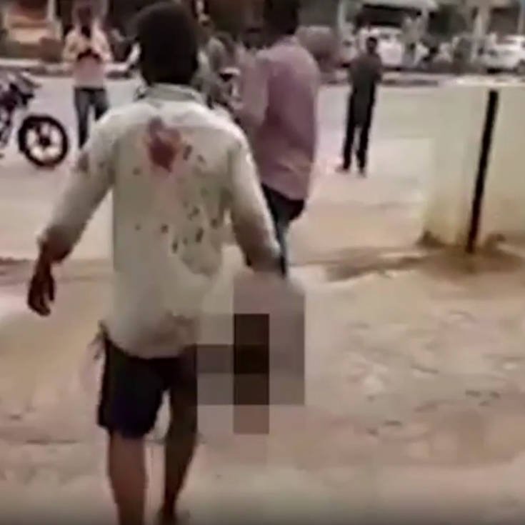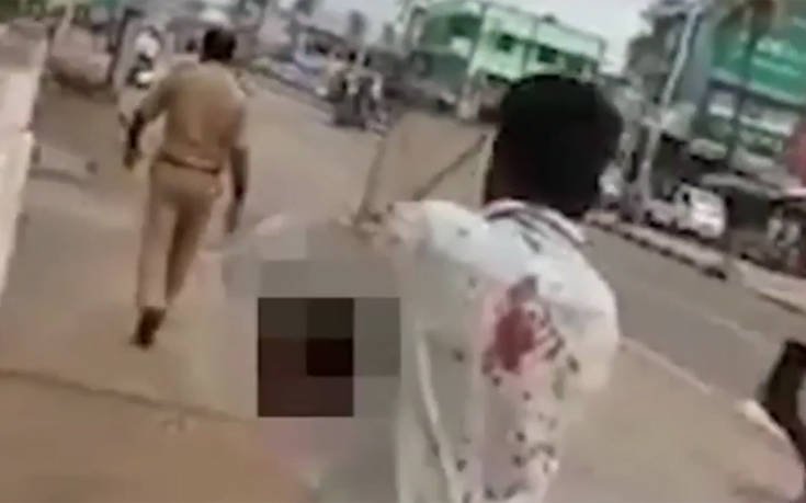 Σοκαριστικές εικόνες δείχνουν έναν Ινδό εργάτη μέσα στα αίματα να πηγαίνει στο αστυνομικό τμήμα του Belakavadi, κρατώντας στο χέρι του το κεφάλι του παιδικού του φίλου!