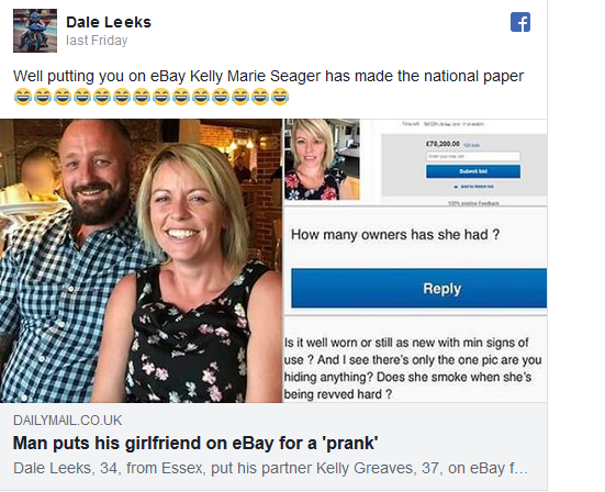 Όρεξη για πλάκα είχε ένας 43χρονος κτηματομεσίτης από το Λονδίνο, ο οποίος -ούτε λίγο ούτε πολύ- αποφάσισε να εκδικηθεί την σύντροφό του για ένα πείραγμά της, βγάζοντάς την -ούτε λίγο ούτε πολύ- σε δημοπρασία μέσω του eBay, με αναπάντεχα, όμως, αποτελέσματα.