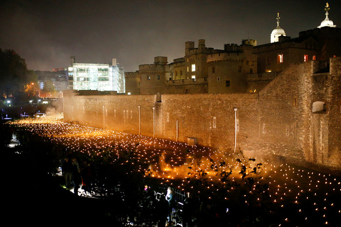 Το τέλος του Α’ Παγκοσμίου Πολέμου γιορτάζεται σε όλη την Ευρώπη και κάθε βράδυ για μια εβδομάδα ο Πύργος του Λονδίνου θα φωτίζεται από τις 10.000 φλόγες.
