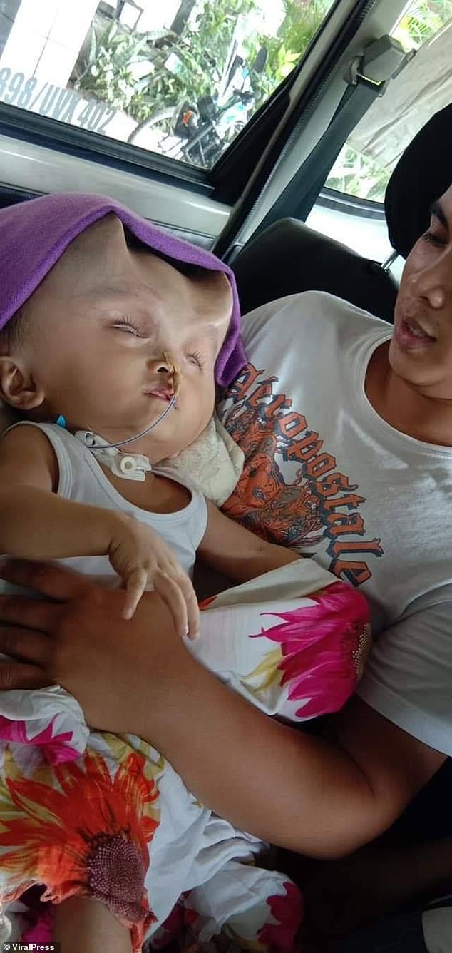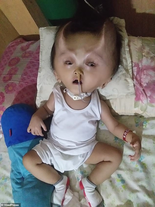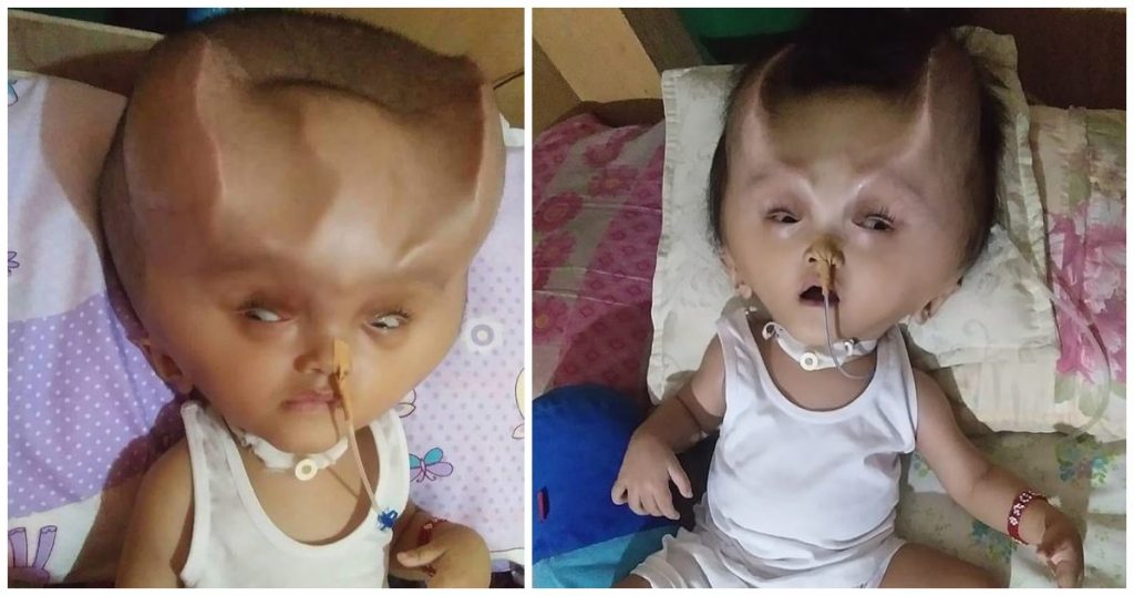 Το μωρό λαμβάνει τροφή μέσω ενός σωλήνα, ενώ ένας άλλος σωλήνας στο λαιμό του τον βοηθάει να αναπνεύσει.