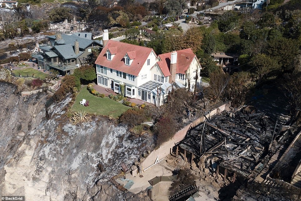Αυτό που κάνει εντύπωση είναι ότι μέσα από τα αποκαΐδια διακρίνεται ολοκάθαρο και άθικτο το σπίτι του Άντονι Χόπκινς. Η έπαυλη του Χολιγουντιανού σταρ ήταν από τις ελάχιστες που γλύτωσαν από την πύρινη λαίλαπα, ενώ γύρω το τοπίο θυμίζει πεδίο μάχης.
