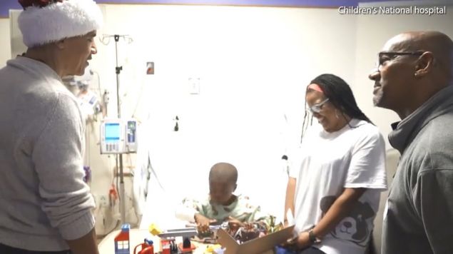 Ο Ομπάμα πέρασε από δωμάτιο σε δωμάτιο φωνάζοντας “χο, χο, χο” την ώρα που μοίραζε τα δώρα που είχε συγκεντρώσει ο ίδιος και οι συνεργάτες του. Πολλές από τις οικογένειες που επισκέφθηκε θα κάνουν γιορτές στο νοσοκομείο.