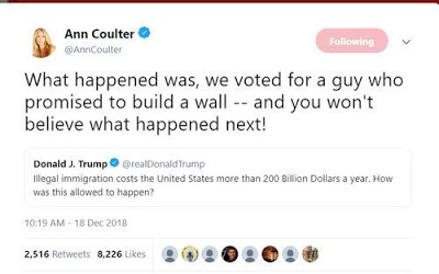 Με βάση μόνο το ατομικό του συμφέρον, πρέπει να γνωρίζει ότι αν δεν κατασκευάσει το τείχος, έχει μηδενικές πιθανότητες επανεκλογής και 100% πιθανότητες να ξεφτιλιστεί.
