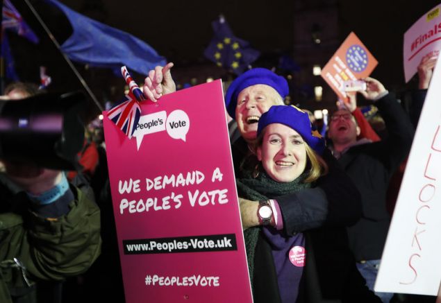 Με κομμένη την ανάσα, περίμεναν να μάθουν πώς ψήφισαν οι βουλευτές. Και μόλις άκουσαν τον πρόεδρο της Βουλής των Κοινοτήτων να ανακοινώνει το αποτέλεσμα, ξέσπασαν σε πανηγυρισμούς. «Καμία συμφωνία, κανένα πρόβλημα», «Σταματήστε το χάος του Brexit» και «Αφήστε τον λαό να ψηφίσει», ήταν τα συνθήματα σε μερικά από τα πλακάτ που κρατούσαν οι διαδηλωτές, που είναι κατά της αποχώρησης από την ΕΕ.