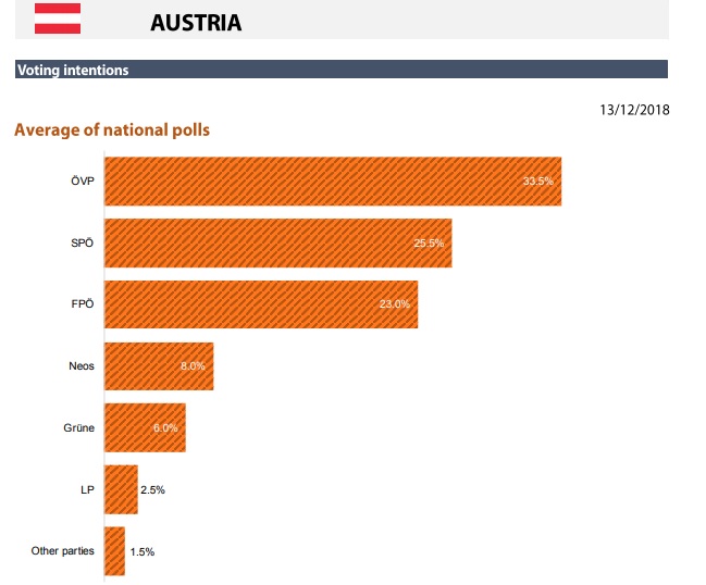 Στην Αυστρία το FPO με 23% βρίσκεται στην τρίτη θέση των δημοσκοπήσεων