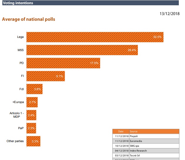 Στην Ιταλία η Λέγκα του Ματέο Σαλβίνι με 32,5% βρίσκεται φυσικά στην πρώτη θέση αυξάνοντας και άλλο τα ποσοστά της