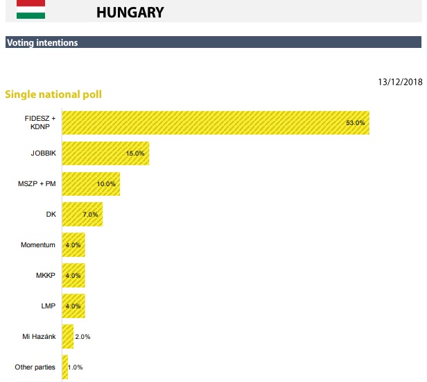 Στην Ουγγαρία το KDNP με 53% βρίσκεται στην πρώτη θέση και ακολουθεί το Jobbik με 15%