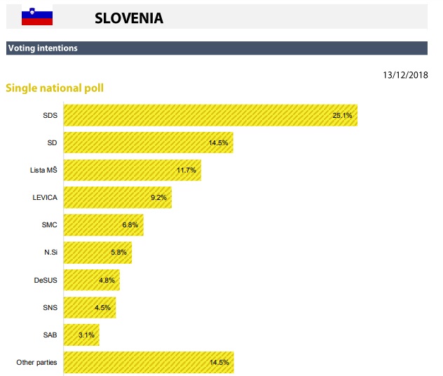 Στη Σλοβενία κατέχει την πρώτη θέση το δεξιό εθνικό κόμμα SDS με 25,1%