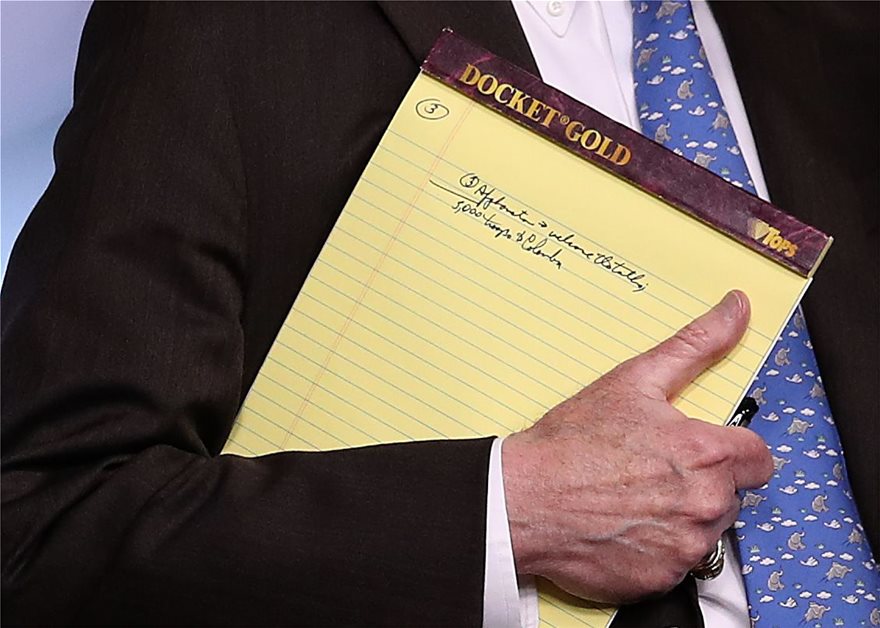 Ο Τζον Μπόλτον, σύμβουλος εθνικής ασφαλείας του Αμερικανού προέδρου Ντόναλντ Τραμπ, δεν φρόντισε να κρύψει τις σημειώσεις του όταν πήγε να απαντήσει στις ερωτήσεις των δημοσιογράφων στην αίθουσα Τύπου του Λευκού Οίκου τη Δευτέρα, με αποτέλεσμα να φανεί σημείωση που έγραφε«5.000 στρατιώτες στην Κολομβία».