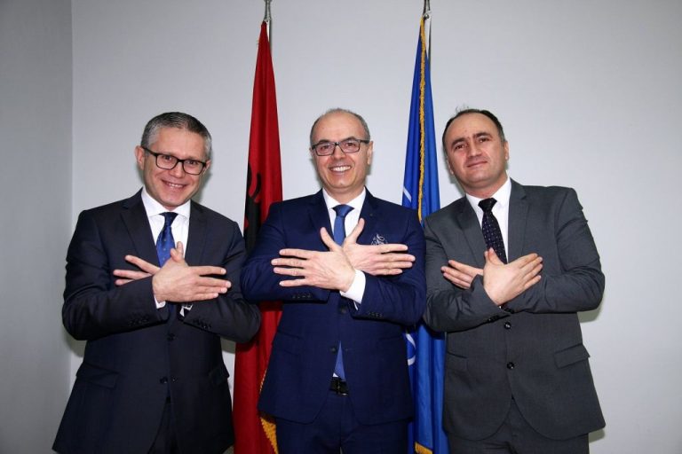 Ενδεικτική των προθέσεων των Σκοπιανών, είναι η φωτογραφία, στην οποία εικονίζονται τρεις υπουργοί Αμυνας να σχηματίζουν με τα χέρια τους χαμογελαστοί τον Αλβανικό Αετό, δηλαδή, το σήμα της Μεγάλης Αλβανίας.