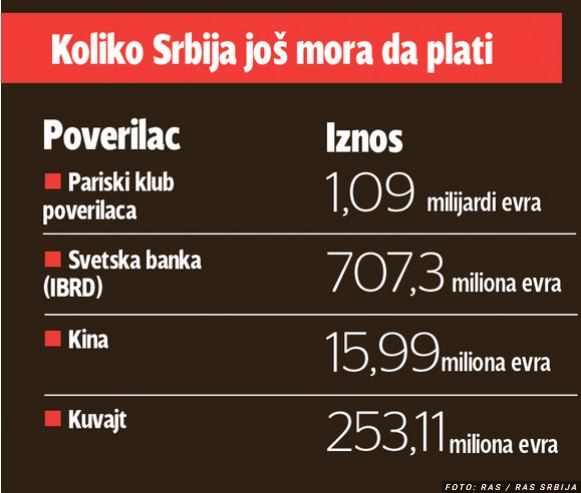 Τα τελευταία δάνεια του 1970 και του 1980, αποπληρώνονται τα μεν πρώτα το 2031 και δε δεύτερα 2041, ενώ το συνολικό ποσό υπερβαίνει τα 1,7 δισεκατομμύρια ευρώ, όπως δημοσιεύει η σερβική εφημερίδα ‘Blic’.