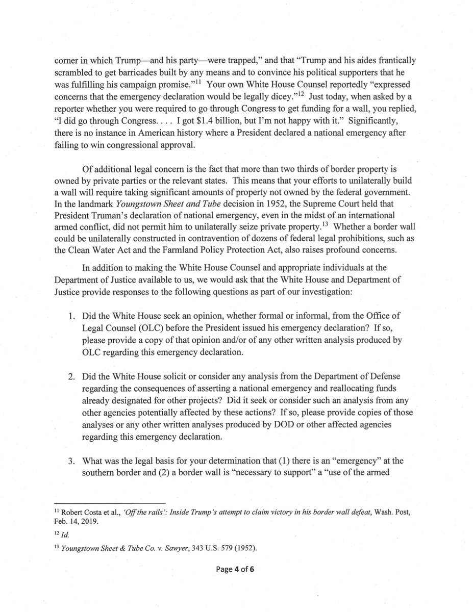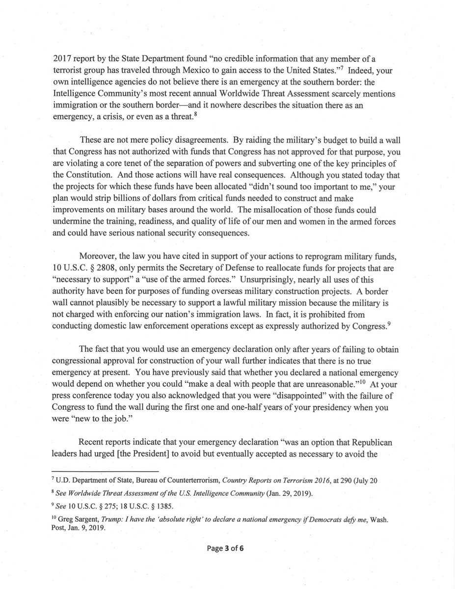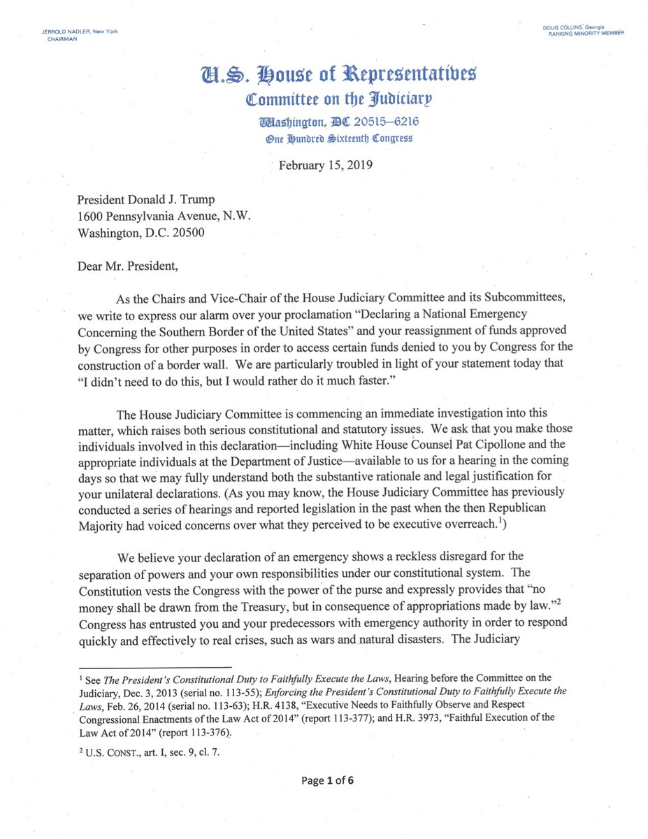Την ώρα της ομιλίας του και των επιχειρημάτων που διατύπωνε για την υπογραφή του νόμου του 1976 «The National Emergencies Act», μια σειρά προσφυγών είχαν ήδη κατατεθεί από Δημοκρατικούς βουλευτές, από πολιτειακές κυβερνήσεις στις ΗΠΑ ενώ η Επιτροπή Δικαιοσύνης της Βουλής των Αντιπροσώπων ανακοίνωνε την έναρξη κατεπείγουσας έρευνας για την ενεργοποίηση του νόμου αυτού.