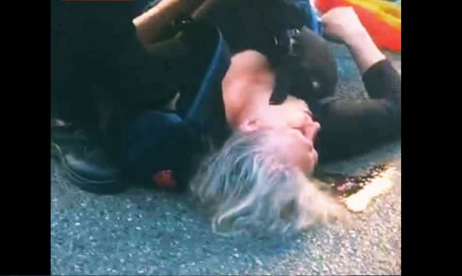 Όπως φαίνεται στις φωτογραφίες, η διαδηλώτρια αρχικά βρίσκεται όρθια μπροστά στα ΜΑΤ, ενώ λίγα δευτερόλεπτα αργότερα αιμόφυρτη στο έδαφος. Η επίθεση της αστυνομίας καταγράφηκε σε βίντεο.
