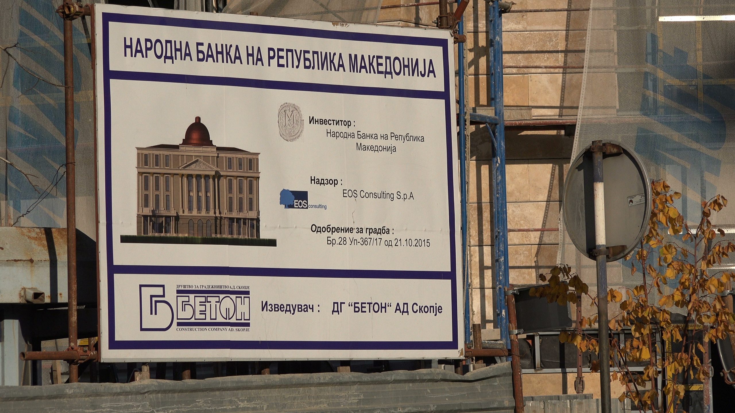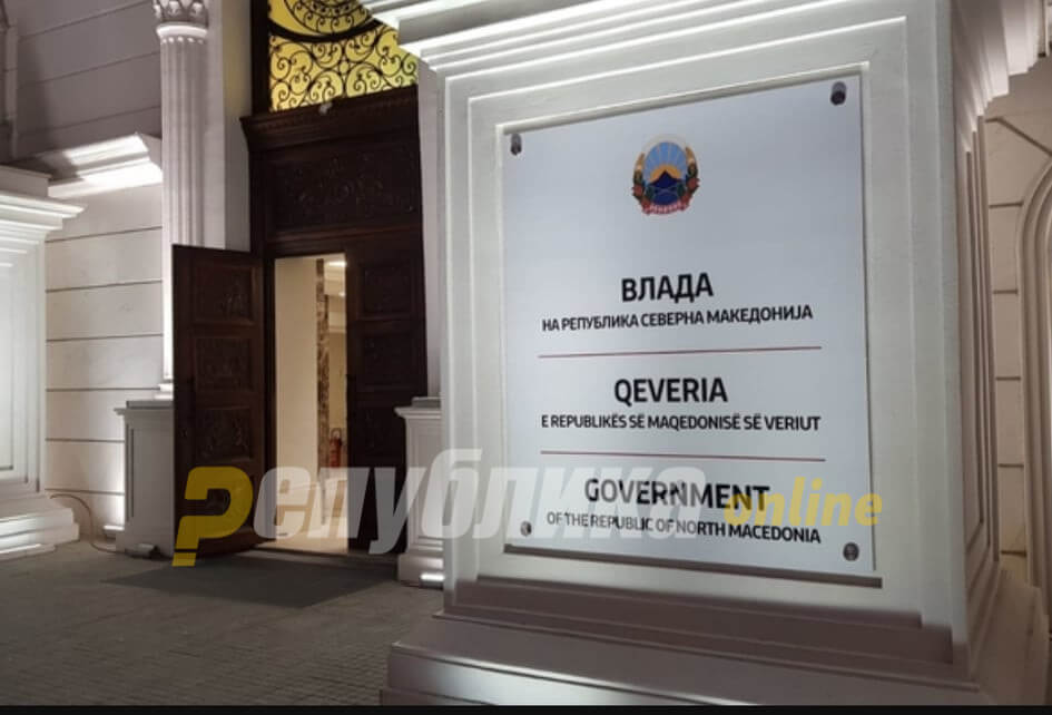 Η πινακίδα είναι σε τρεις γλώσσες, τη σλαβική, την αλβανική και την αγγλική και σε αυτήν αναγράφεται «Κυβέρνηση της Δημοκρατίας της Βόρειας Μακεδονίας».