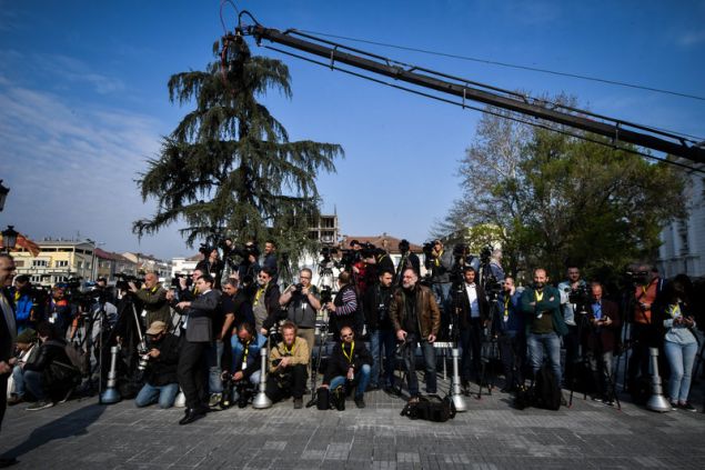 Εντωμεταξύ έξω από το κτίριο της κυβέρνησης της Βόρειας Μακεδονίας από νωρίς γίνονταν οι απαραίτητες ετοιμασίες, ενώ εδώ και λίγη ώρα είναι συγκεντρωμένο πλήθος φωτογράφων και δημοσιογράφων: