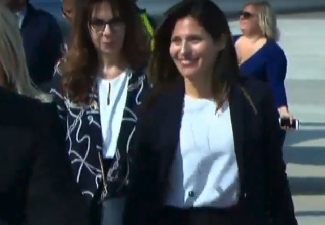 Λίγο μετά τον Αλέξη Τσίπρα από πρωθυπουργικό αεροσκάφος κατέβηκε και η σύντροφός του Περιστέρα Μπαζιάνα που τον συνοδεύει στην αποστολή. Χαμογελαστή και εκείνη επιβιβάστηκε σε ξεχωριστό αυτοκίνητο προκειμένου να ακολουθήσει το πρόγραμμα που έχει δημιουργηθεί για εκείνη.