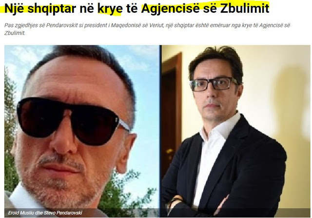Αμέσως μετά την εκλογή του ως προέδρου της χώρας, ο Στέβο Πενταρόφσκι, διόρισε ως επικεφαλής της Υπηρεσίας Πληροφοριών των Σκοπίων έναν ανώτερο υπάλληλο αλβανικής καταγωγής, όπως σημειώνει αλβανικό δημοσίευμα.