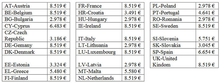 Το 2019 το μέγιστο διαθέσιμο ποσό γι’ αυτό τον σκοπό ανέρχεται σε 24.943 ευρώ ανά ευρωβουλευτή, ο οποίος όμως δεν λαμβάνει αυτά τα χρήματα. Το ποσό δίνεται εν μέρει ως μισθός στους υπαλλήλους του γραφείου που έχουν τα απαραίτητα προσόντα και εν μέρει στις αρμόδιες φορολογικές Αρχές.