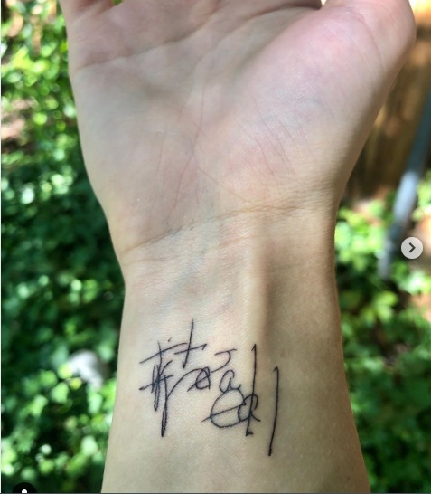 Η φράση που περιέχει το τατουάζ είναι «It’s real» ( Είναι πραγματικό).