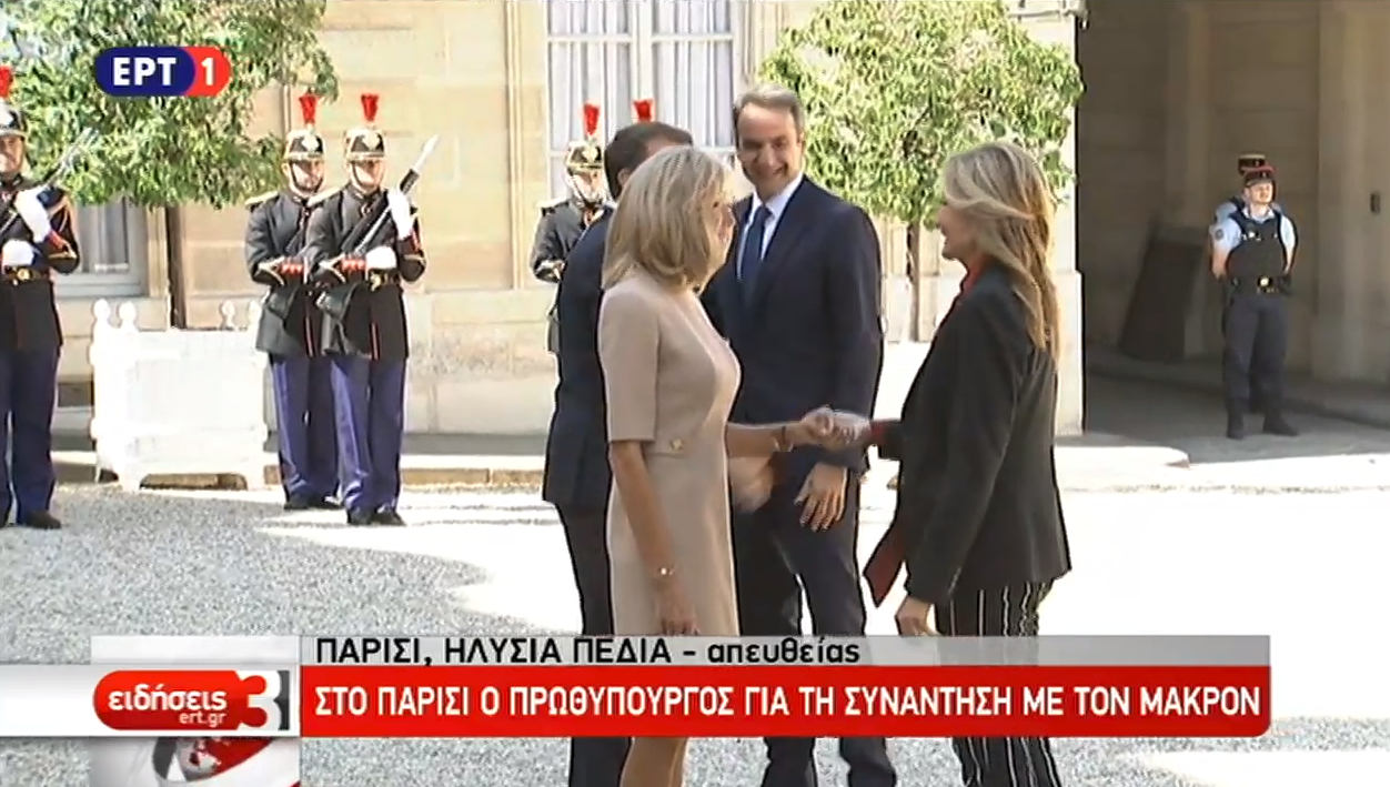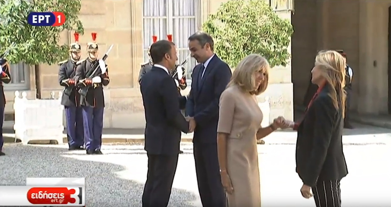 Πιο αναλυτικά, τον πρωθυπουργό Κυριάκο Μητσοτάκη, ο οποίος συνοδεύεται από την σύζυγό του Μαρέβα, υποδέχτηκαν στο κατώφλι του προεδρικού μεγάρου ο Εμανουέλ και η Μπριζίτ Μακρόν.