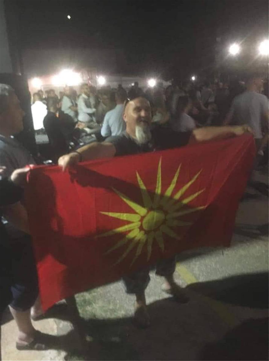Στα απόνερα των… Πρεσπών, Σκοπιανός εθνικιστής ύψωσε σε ελληνικό πανηγύρι την ψευδεπίγραφη κόκκινη σημαία με τον Ήλιο της Βεργίνας, την ίδια ώρα που η φιλοσκοπιανή ορχήστρα έπαιζε γνωστά αλυτρωτικά τραγούδια.