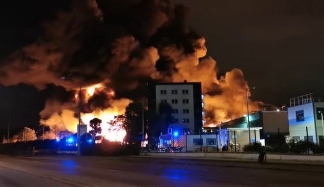 Περίπου 130 πυροσβέστες έχουν σπεύσει στο εργοστάσιο για να συμμετάσχουν στις προσπάθειες κατάσβεσης της πυρκαγιάς.