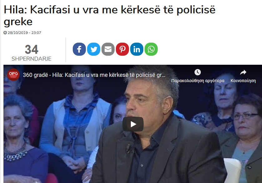 Όπως είπε ο Ντρίταν Χίλα, δημοσιογράφος και οικοδεσπότης της εκπομπής «Αρένα», ο Κασταντίνος Κατσιφάς σκοτώθηκε κατόπιν αιτήματος της Ελληνικής Αστυνομίας!