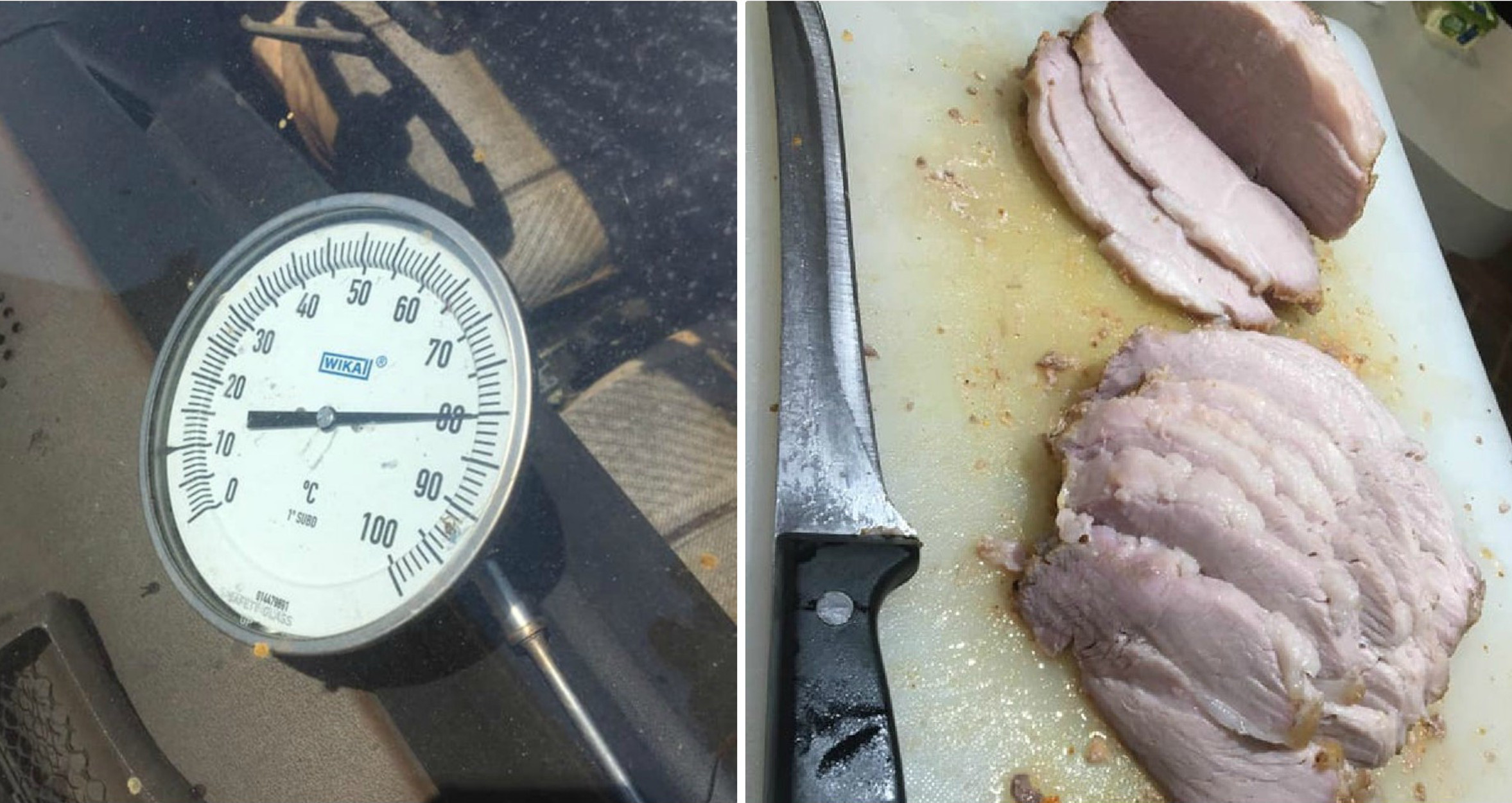 «Έγινε μούρλια!», ενημέρωσε σε ανάρτησή του στο Facebook, συνοδευόμενη από φωτογραφίες και βίντεο του ψημένου κρέατος, κομμένου σε φέτες, για να φαίνεται πόσο καλοψημένο ήταν.