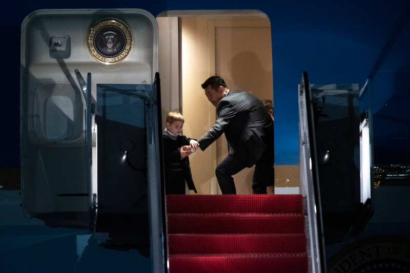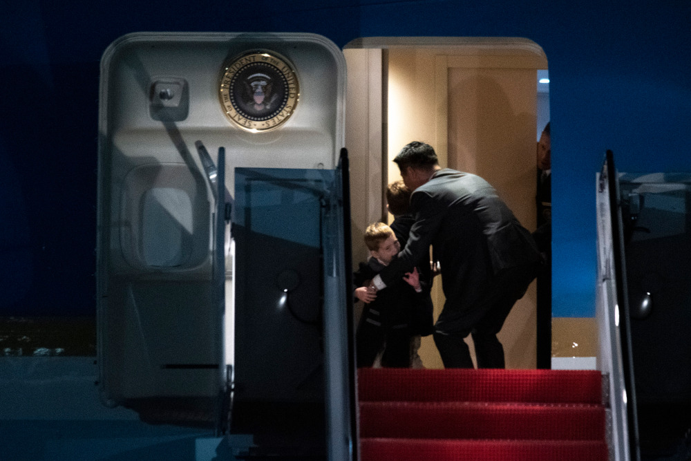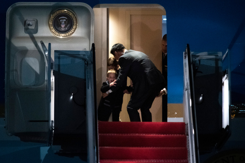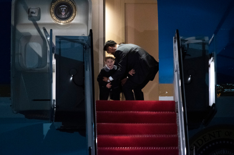 Η οικογένεια Τραμπ επέστρεψε χθες στον Λευκό Οίκο, ταξιδεύοντας με το Air Force One από την Φλόριντα. Ο Αμερικανός πρόεδρος συνοδευόμενος από την Μελάνια, τον γιο του Μπάιρον, την κόρη του Ιβάνκα και τα τρία της παιδιά, προσγειώθηκαν στην στρατιωτική βάση στο Μέριλαντ με ένα μικρό απρόοπτο να συμβαίνει κατά την αποβίβαση.