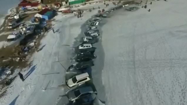 Οι ερασιτέχνες ψαράδες είχαν παρκάρει τα αυτοκίνητά τους στη σειρά και ξαφνικά ο πάγος υποχώρησε και «κατάπιε» πάνω από 37 αυτοκίνητα. Κάποια από αυτά βυθίστηκαν ολοσχερώς και κάποια όχι, αλλά η ζημιές που έπαθαν είναι μεγάλες. Ευτυχώς πάντως δεν υπήρξαν θύματα.