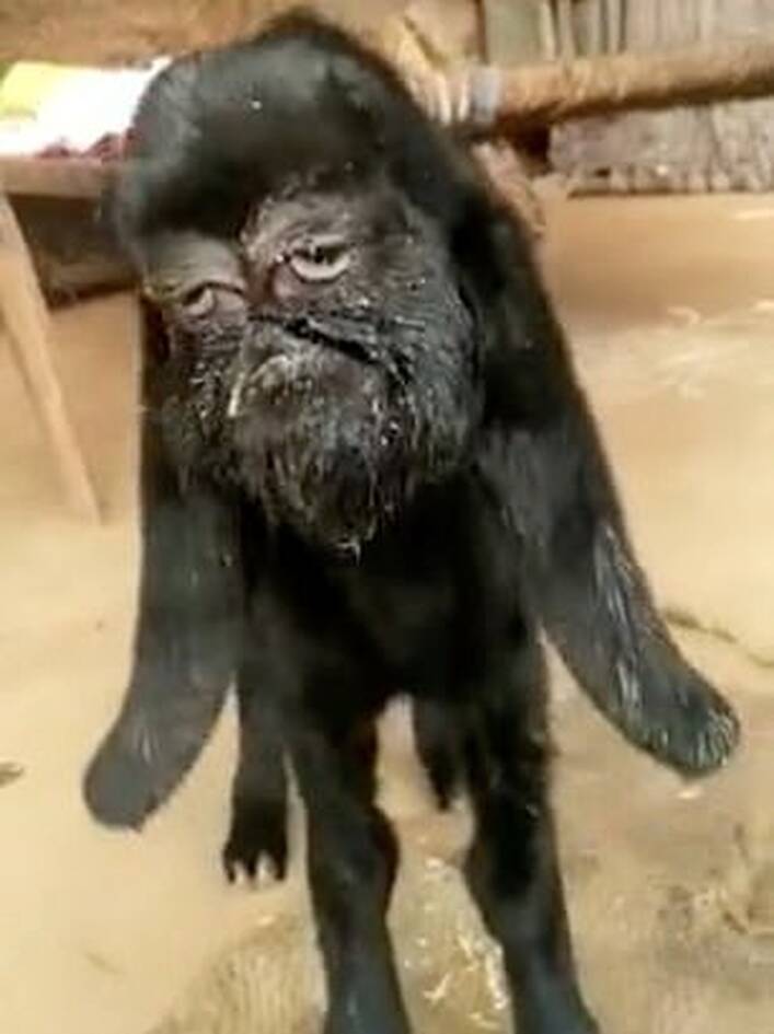 Ο ιδιοκτήτης της μικρής κατσίκας Mukeshji Prajapap δημοσίευσε ένα σύντομο βίντεο του ζώου με το περίεργο πρόσωπο μέσα στην καλύβα του νωρίτερα αυτή την εβδομάδα.