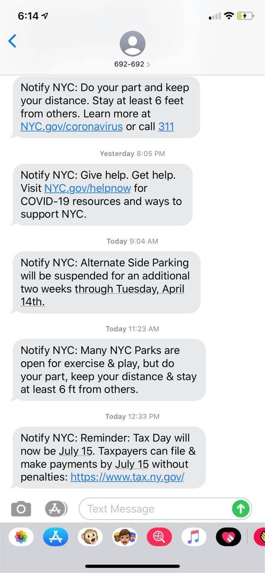 Παρόλο που, όπως επισημαίνει, δεν απαιτούνται ειδικά έγγραφα για τις μετακινήσεις, στέλνονται ωστόσο ειδοποιητικά μηνύματα στα κινητά των πολιτών, με τα οποία καλούνται να κρατούν αποστάσεις ο ένας από τον άλλον, τουλάχιστον δύο μέτρων, και να μην συνωστίζονται σε μέρη.