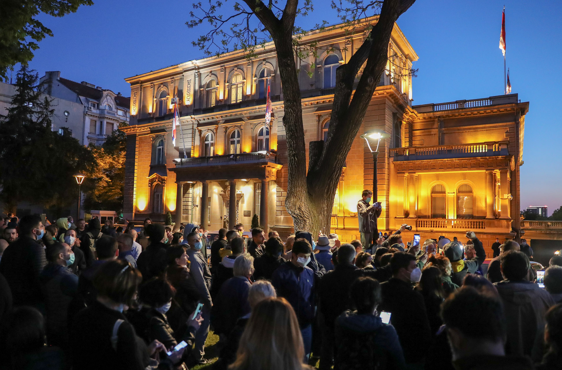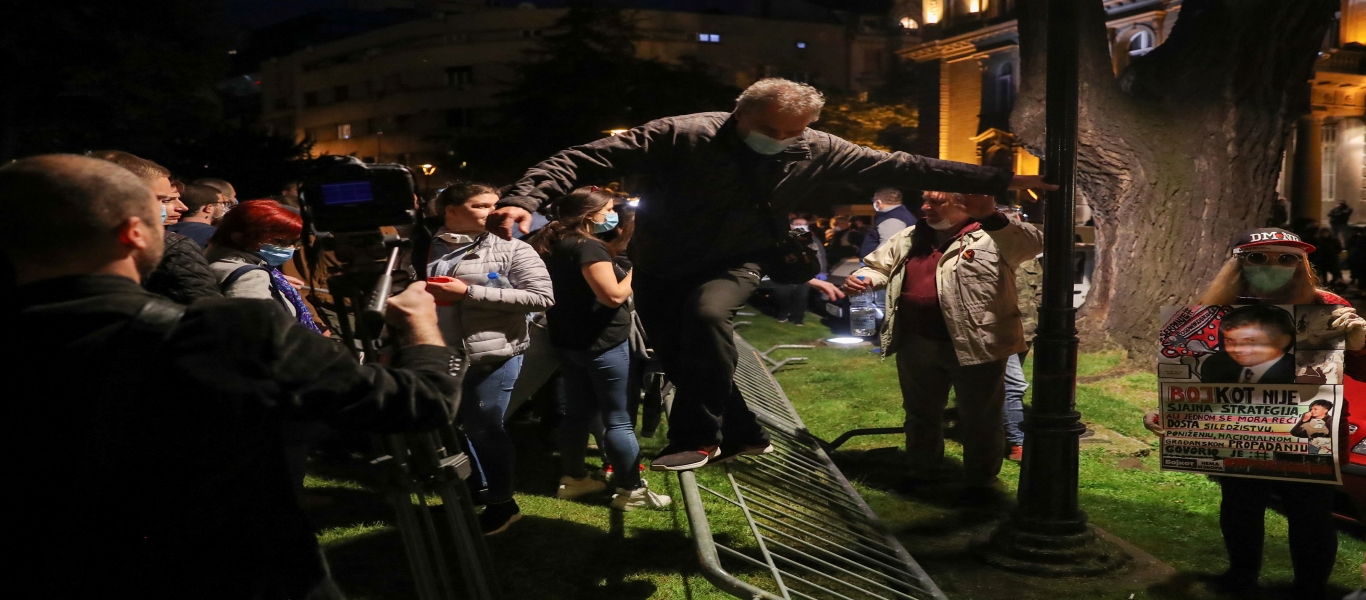Παράλληλα χθες το βράδυ το κίνημα «Dveri» οργάνωσε επίσης συγκέντρωση διαμαρτυρίας «κατά του απολυταρχισμού του καθεστώτος Βούτσιτς» έξω από το προεδρικό μέγαρο όπου συμμετείχαν εκατοντάδες υποστηρικτές τους.