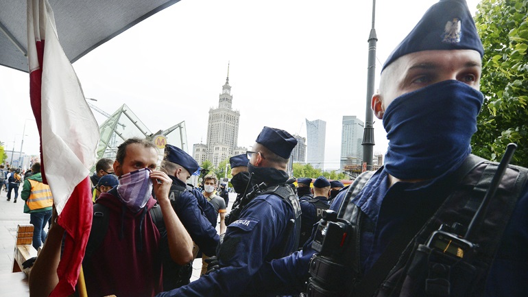 Στη Βαρσοβία, εκατοντάδες πολίτες διαδήλωσαν για άλλη μια φορά διαμαρτυρόμενοι για τα περιοριστικά μέτρα και τις οικονομικές επιπτώσεις της καραντίνας.