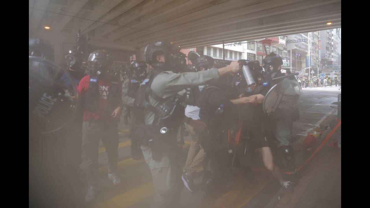 Οι διαδηλωτές, η συγκέντρωση των οποίων δεν είχε την άδεια των αρχών, έκαναν πορεία ανάμεσα στις εμπορικές συνοικίες Κοζγουεϊ Μπέι και Ουανσάι, όταν εκτοξεύθηκαν τα δακρυγόνα. Τουλάχιστον ένας διαδηλωτής συνελήφθη.