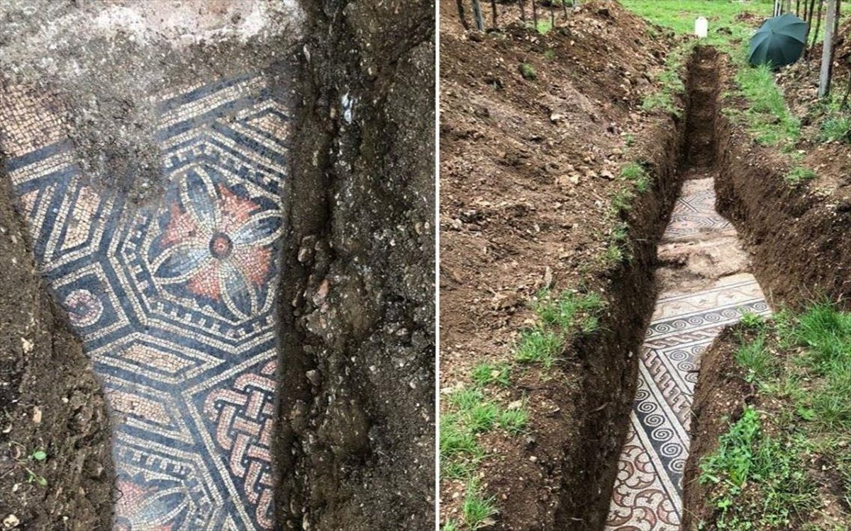 Τα πολυτελή ψηφιδωτά σε έντονα χρώματα και με γεωμετρικά σχέδια, που μόνο ένα τμήμα τους έχει αποκαλυφθεί, ενδεχομένως αποτελούν μέρος μιας ρωμαϊκής έπαυλης του 3ου αιώνα, την οποία έχουν επισημάνει αρχαιολογικές αναφορές από το 1922.