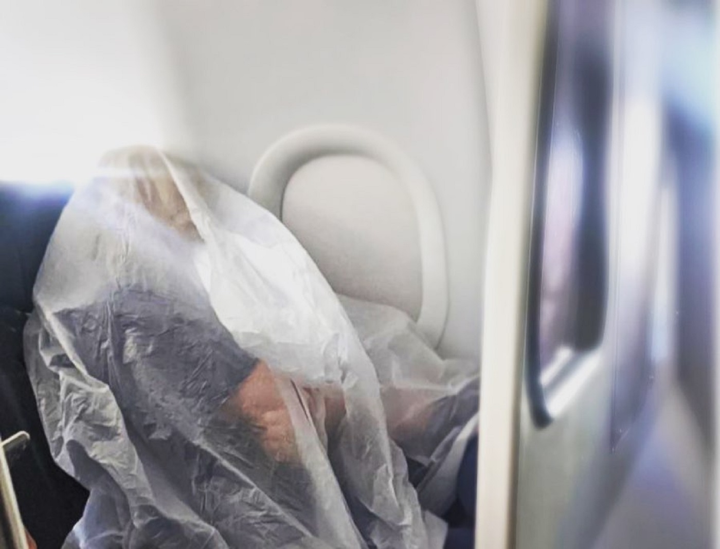 Αρκετοί φαίνεται πως είναι επηρεασμένοι από την διαρκή κινδυνολογία πολιτικών, «ειδικών» και ΜΜΕ, για τον κορωνοϊό, ανάμεσα τους και ο συγκεκριμένος επιβάτης αεροπλάνου, που μπήκε μέσα σε μια νάιλον σακούλα για να προστατευτεί.