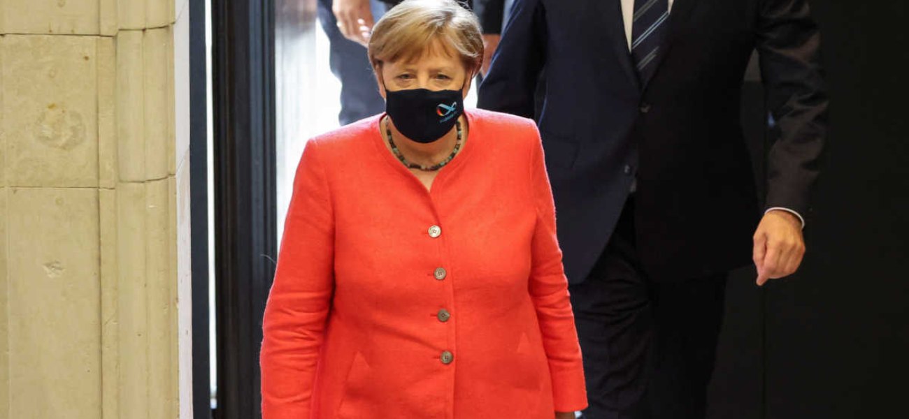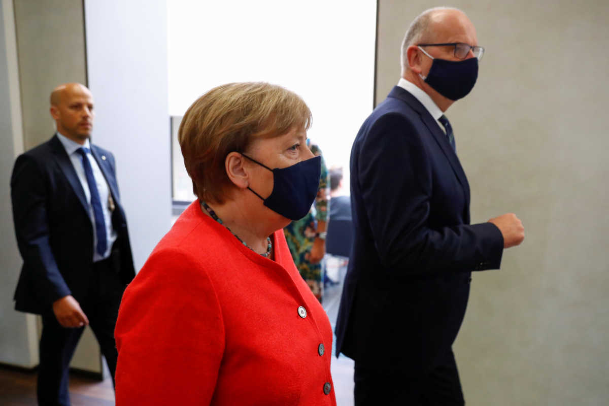 Η Μέρκελ μπήκε στην Μπούντεσρατ, την άνω βουλή του γερμανικού κοινοβουλίου, φορώντας μια μαύρη μάσκα με το σήμα EU2020.de του ιστότοπου που είναι αφιερωμένος στην εξάμηνη προεδρία της ΕΕ από την Γερμανία από την 1η Ιουλίου.