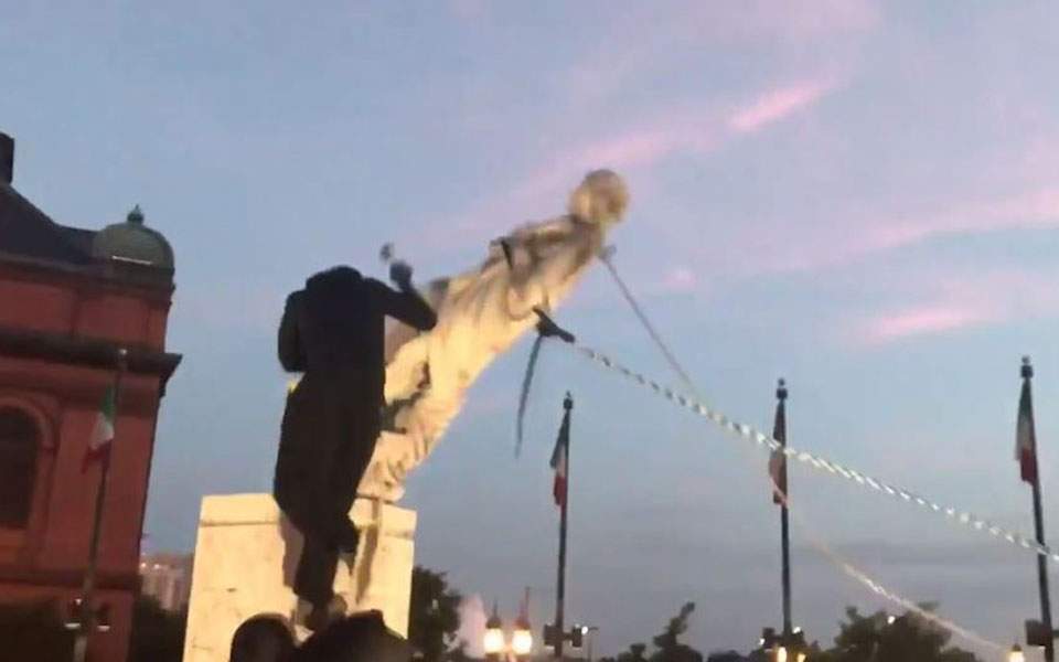 Ακροαριστεροί εξτρεμιστές γκρέμισαν χθες βράδυ, ανήμερα της 4ης Ιουλίου, άγαλμα του εξερευνητή Χριστόφορου Κολόμβου στη Βαλτιμόρη, το έσυραν στο λιμάνι της πόλης και το πέταξαν στο νερό.