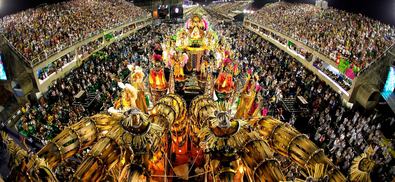 Στο καρναβάλι του Ρίο, κάθε σχολή συμμετέχει με σχεδόν 3.000 μέλη της που χορεύουν, φορώντας κοστούμια, πολύ κοντά ο ένας με τον άλλο και τραγουδώντας καθ’ όλη τη διάρκεια της παρέλασης στο Σαμποδρόμιο, η οποία διαρκεί λίγο παραπάνω από μία ώρα.