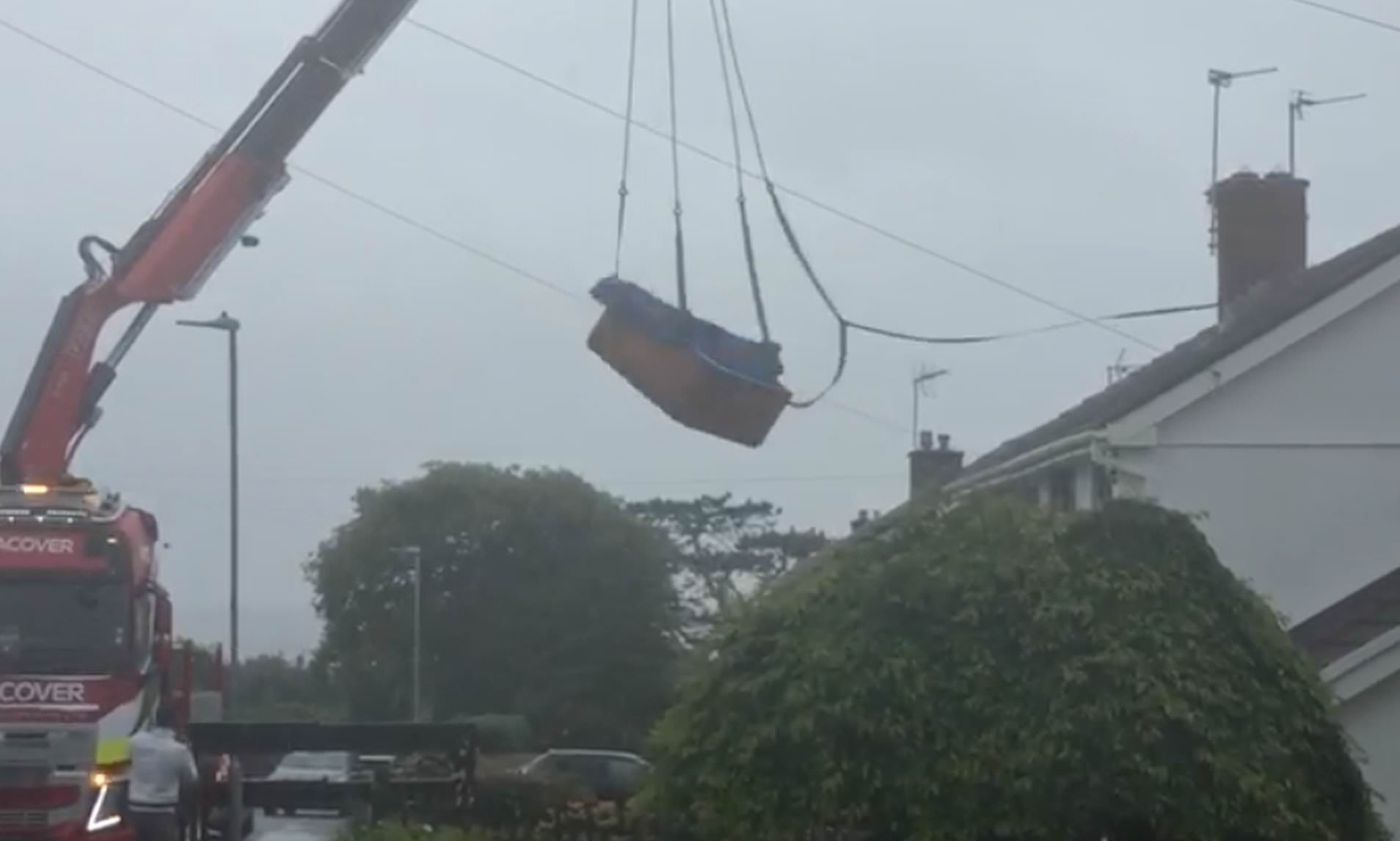 Ένας γείτονας που πήρε το βίντεο αλλά δεν ήθελε να κατονομαστεί είπε: «Παρακολούθησα το όλο πράγμα. Είδα τον γερανό ακριβώς πάνω από το σπίτι και σκέφτηκα: «Τι κάνουν εκεί;».