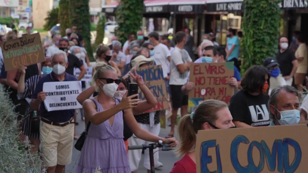 Στη Μαγιόρκα στην πόλη Μαγαλούφ, διαδηλωτές απαίτησαν οικονομική βοήθεια από την περιφερειακή κυβέρνηση. Λόγω της εξάπλωσης του Covid-19 οι επιχειρηματίες υποχρεούνται να κλείνουν τα καταστήματα τους τα μεσάνυχτα, με αποτέλεσμα να πλήττονται οικονομικά.