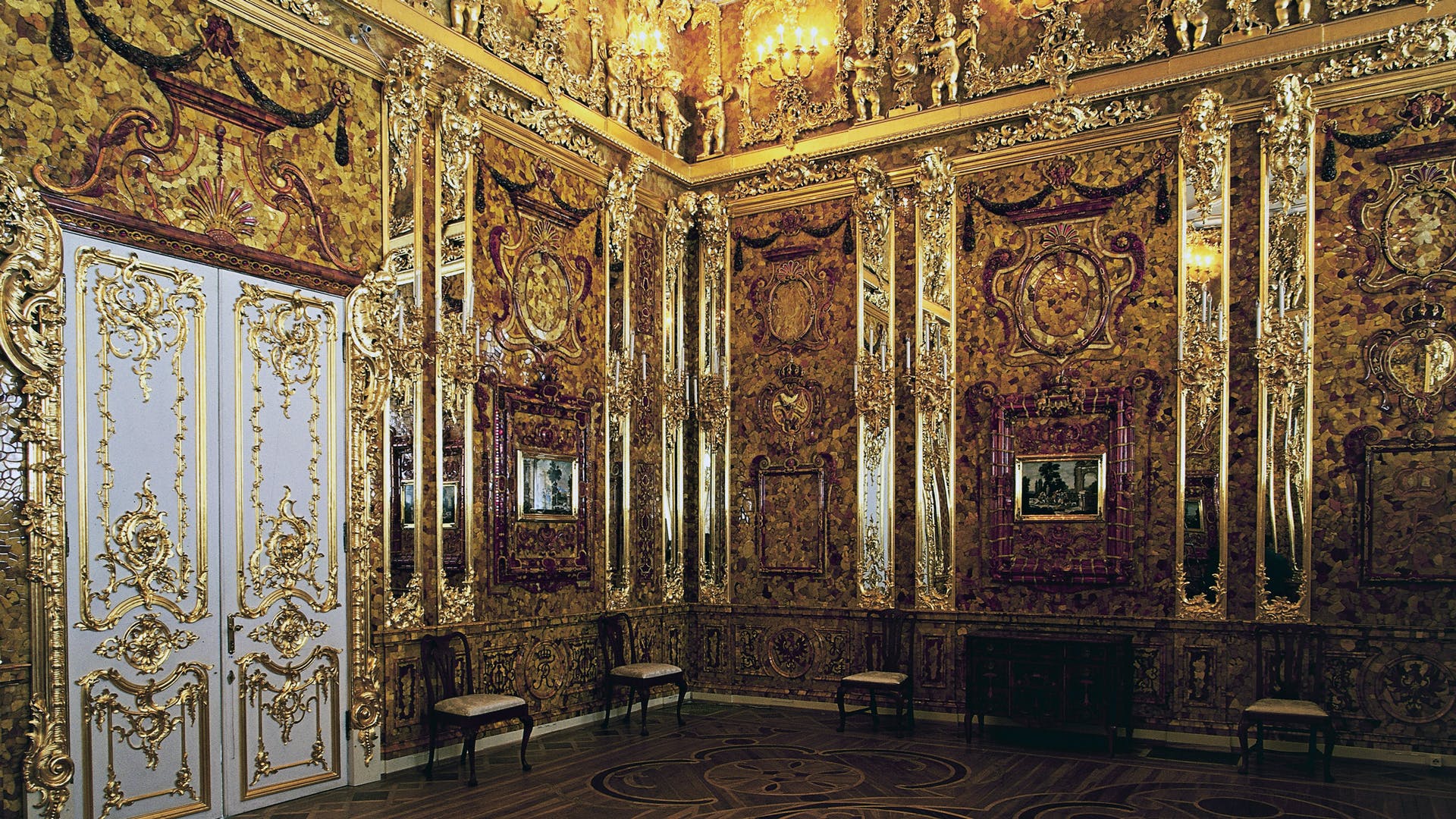 Το αυθεντικό Κεχριμπαρένιο δωμάτιο κατασκευάστηκε τον 18ο αιώνα στην Πρωσία· δωρήθηκε στην Αγ. Πετρούπολη και εθεωρείτο το «όγδοο θαύμα του κόσμου». Κατά τη διάρκεια του Β΄ Παγκοσμίου Πολέμου επέστρεψε στη Γερμανία, όπου τελικά εξαφανίστηκε.