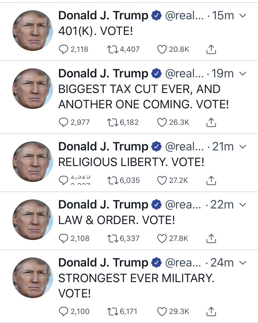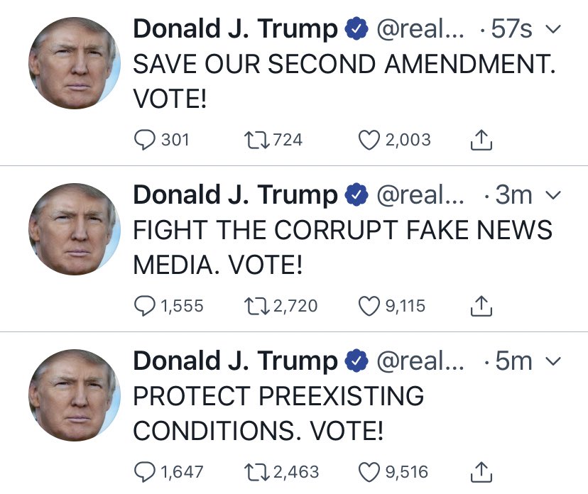 Μάλιστα λίγες ώρες πριν πάρει εξιτήριο ο Αμερικανός πρόεδρος έκανε 17 tweets σε μια ώρα, αποδεικνύοντας πως είναι πιο ενεργός και δυνατός από ποτέ.