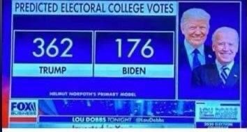 Όπως φαίνεται από την εικόνα το FOX News δίνει 362 εκλέκτορες στον Ντόναλντ Τραμπ και μόλις 176 στον Τζον Μπάιντεν.