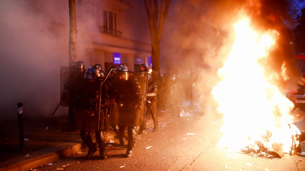 Δεκάδες κουκουλοφόροι πέταξαν αντικείμενα εναντίον των αστυνομικών δυνάμεων, έσπασαν βιτρίνες καταστημάτων, πυρπόλησαν αυτοκίνητα και έβαλαν φωτιά σε οδοφράγματα κατά τη διάρκεια της διαδήλωσης στο Παρίσι κατά της αστυνομικής βίας.